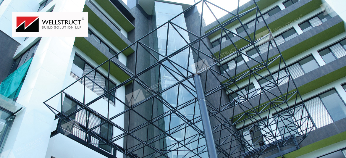 It is skyline structure located in front of the five star hotel and the frame structure is used with space frame 3d structure having ball node bar joint it will increase the esthetic beauty of structure . Top cladding is covered by using toughened glass with minimum block of proper water drinking. And the structure is lighted for esthetic beauty.